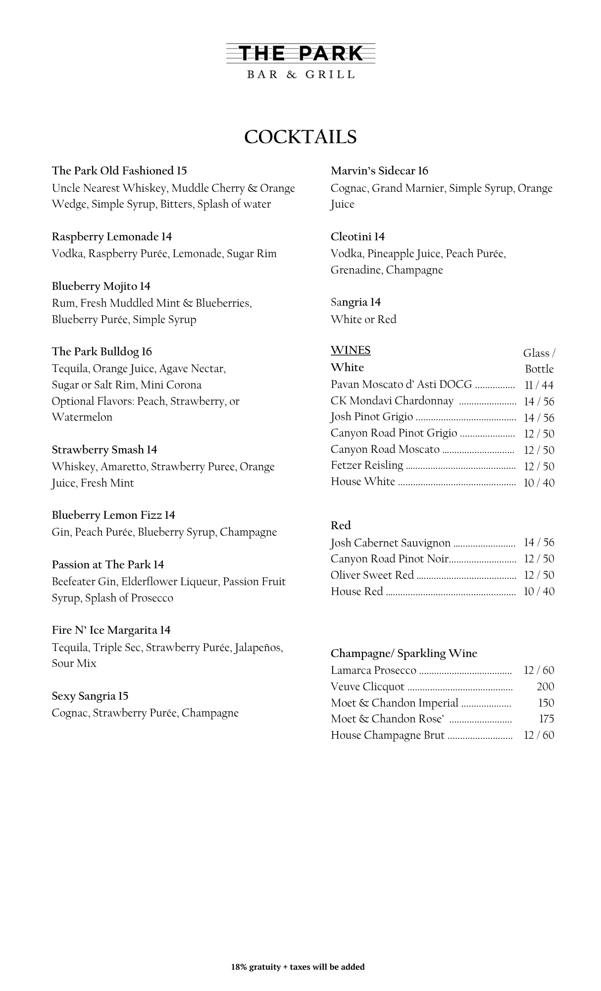 SERVED WITH THE PARK SEAFOOD SAUCE